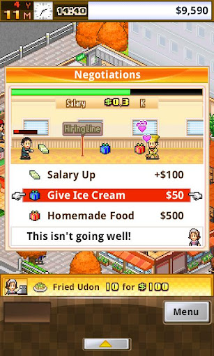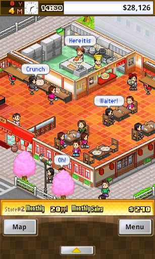 Decide every detail of the floor from tables to TVs and do whatever it takes to make your customers happy! After all, their ratings determine whether you're chef...or sap. Score enough points and you'll be able to host a variety of fun events from eating contests to cooking classes, further boosting your popularity!